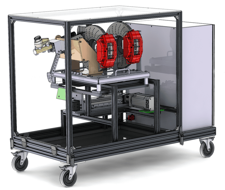 Mit dem Erweiterungssystem Pedalaktuator von CANWAY können komplette und reale Bremssysteme unter realistischen Betriebsbedingungen getestet und abgesichert werden. Zu diesem Zweck wird die Fahrzeugdynamik simuliert und die effektiven Bremskräfte werden durch ein Linearsystem auf das Bremssystem aufgebracht. Das hydraulische Bremssystem kann einschließlich aller zugehörigen Komponenten vom Bremspedal, über Bremssattel und die Bremsscheiben, bis hin zu allen relevanten Steuergeräten installiert werden.