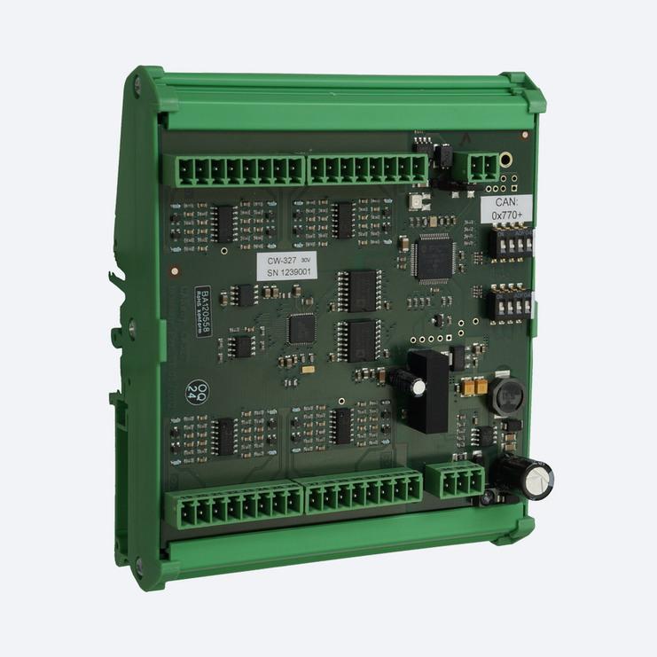 Mit dem CW-327 erweitert sich die CW-300er-Serie für Prüfstandstechnik um ein Modul zum Messen von 16 analogen Spannungen. Diese Spannungen können bei einer Auflösung von 16 Bit von 0 bis max. 60 VDC pro Kanal gemessen werden. Geräteeinstellungen, wie Baudrate des CAN-Busses, Ausgaberate, Spannungsbereiche und Sendemodi können komfortabel über CAN-Botschaften konfiguriert werden. Alle 16 Eingänge werden synchron abgetastet und auf dem CAN-Bus ausgegeben.