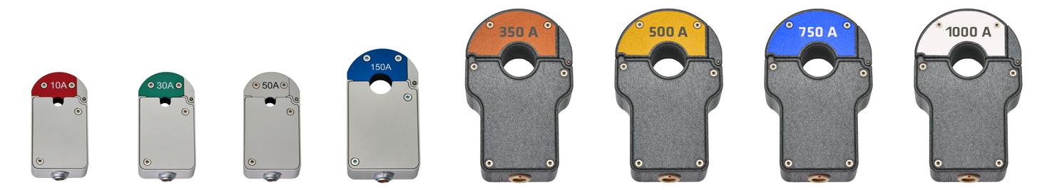 | Abmessungen (LxBxH) | bis ±50 A: 59 mm x 32 mm x17,5 mm ±150 A: 68 mm x 36 mm x 17,5 mm ab ±350 A: 90 mm x 55 mm x 22 mm |