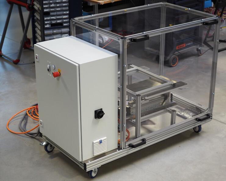 Alle Fahrzeugkomponenten werden in einem mobilen Laborwagen verortet, der mit einer Schutzabdeckung ausgestattet ist. Die mechanische Struktur besteht aus einem maßgeschneiderten Gestell, das zur Aufnahme und Sicherung des Bremssystemträgers dient. Der Laborwagen enthält einen Schaltschrank mit einer Hilfsstromversorgung, Sicherheitstechnik und Schnittstellen sowohl zum Prüfobjekt als auch zum Echtzeitsystem.