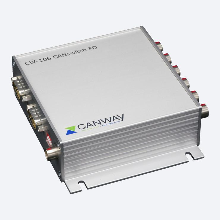 The CW-106 CANswitch FD establishes a connection via CAN bus between an existing topology and the output channels (bi- and unidirectional).