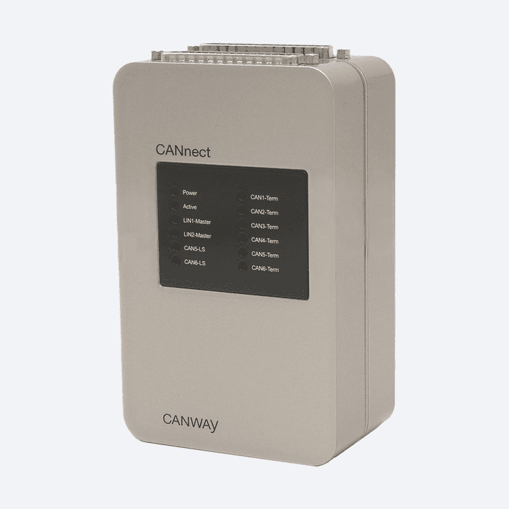 The CANnect CAN FD extension module enhances the base module by adding high performance access to CAN FD networks. The main features are the four CAN FD interfaces that support current standard ISO 11898. The extension module is based on modern, high capacity state-of-the-art FPGA technology. It supports the whole range of functions offered by the intuitive configuration software, well-known from the CANnect base module.