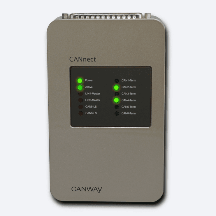 CANnect is a fieldbus gateway designed for flexible communication via CAN, CAN FD, LIN and Ethernet. Applications include the integration and simulation of control units (ECUs) as well as sensor systems used in the automotive sector (for example, HiL / EoL test benches, component testing and vehicle prototypes). The gateway facilitates flexible cross mapping of hardware interfaces, messages and signals. Furthermore, it is also possible to generate desired messages, including bus data error detection (for example checksums, alive counter, CRC) for a restbus simulation. High levels of flexibility ensure it is possible to deploy CANnect in any onboard network or E/E architecture.