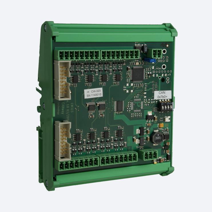 We have expanded our CW-300 series for test bench technology with the CW-323, a module designed to output 16 analog voltages. It is possible to freely select these voltages between 0-5 VDC with a high 12 bit resolution. The voltage outputs are controlled via the CAN bus. If required, it is possible to synchronize all 16 voltages.